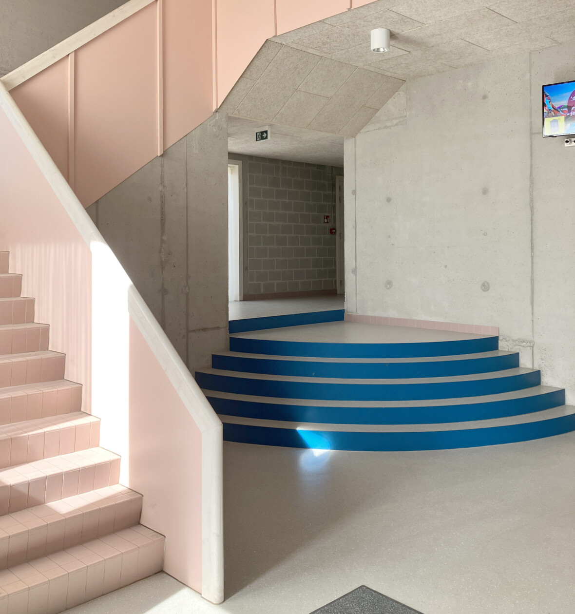 De meeste klaslokalen zijn gegroepeerd rond een ruime centrale gang, met trappen aan de uiteinden. Deze ruimte kan ingezet worden als uitbreiding van de klaslokalen, maar ook als expositieruimte of als dynamische leer- en werkplek. Speelse kleuraccenten in het interieur ondersteunen de oriëntatie. Tijdens het bezoek geven Dirk Fredricx (De Architectengroep) en Dieter Beyens (HIVSET) een inkijk in het traject van ontwerp, bouw en gebruik. Ontdek het schoolgebouw met zijn leesbare structuur en doordacht kleurgebruik tijdens de rondleiding op woensdag 11 maart.