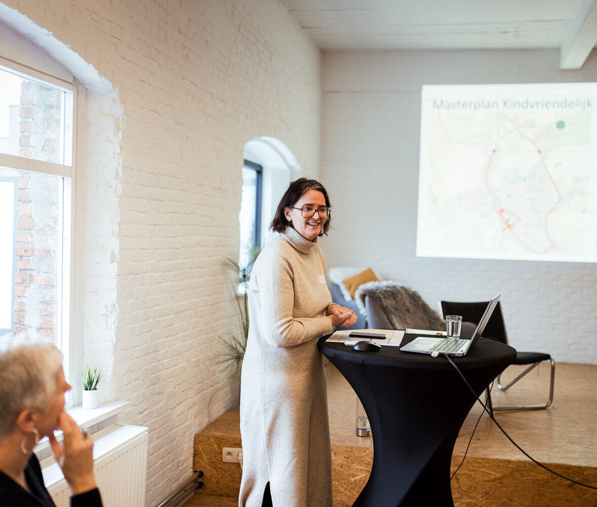 Na de intro door Edith verschuift de aandacht naar Wortel, een plek die voor velen in de zaal intussen vertrouwd aanvoelt. Ann Embrechts, planoloog bij de stad Hoogstraten, neemt ons mee in het verhaal van het dorp en plaatst de bredere inzichten over dorpsontwikkeling in een concrete bestuurlijke en ruimtelijke realiteit. Haar lezing maakt voelbaar hoe beleid en dorpse leefbaarheid elkaar raken, maar niet altijd vanzelfsprekend samenvallen.